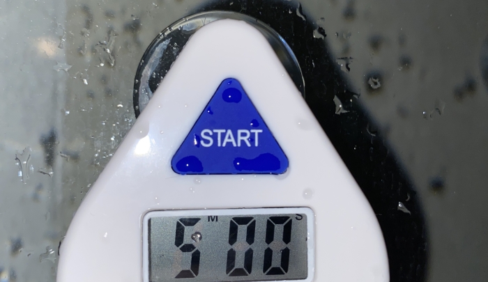 Algemeen Housekeeping Zandloper in douche Zandloper van 5 minuten vast ophangen in de douche naast de douchezeep. Bespaartip van Nina - Mercure Zwolle